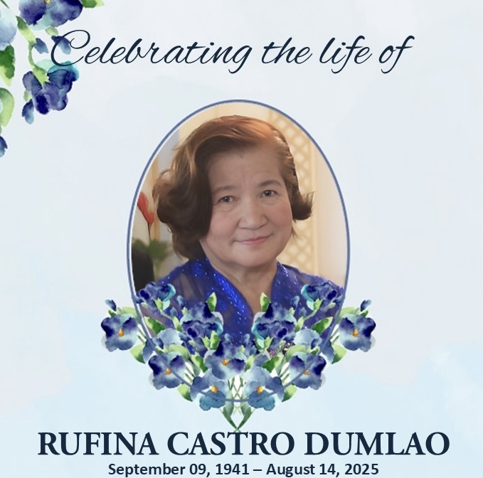 Rufina Castro-Dumlao of Malabon City peacefully joined our Creator on Aug. 14, 2025, surrounded by her loved ones. She was 83.