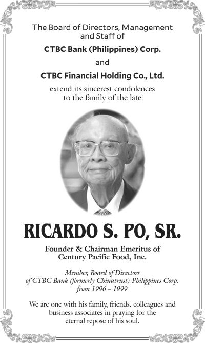 Ricardo S. Po, Sr. October 14, 2021 Author: INQ Memories INQ Memories October 14, 2021 Previous Article Marcelino M. Florete Jr. Next Article Benjamin “Boy” Lapitan Ang
